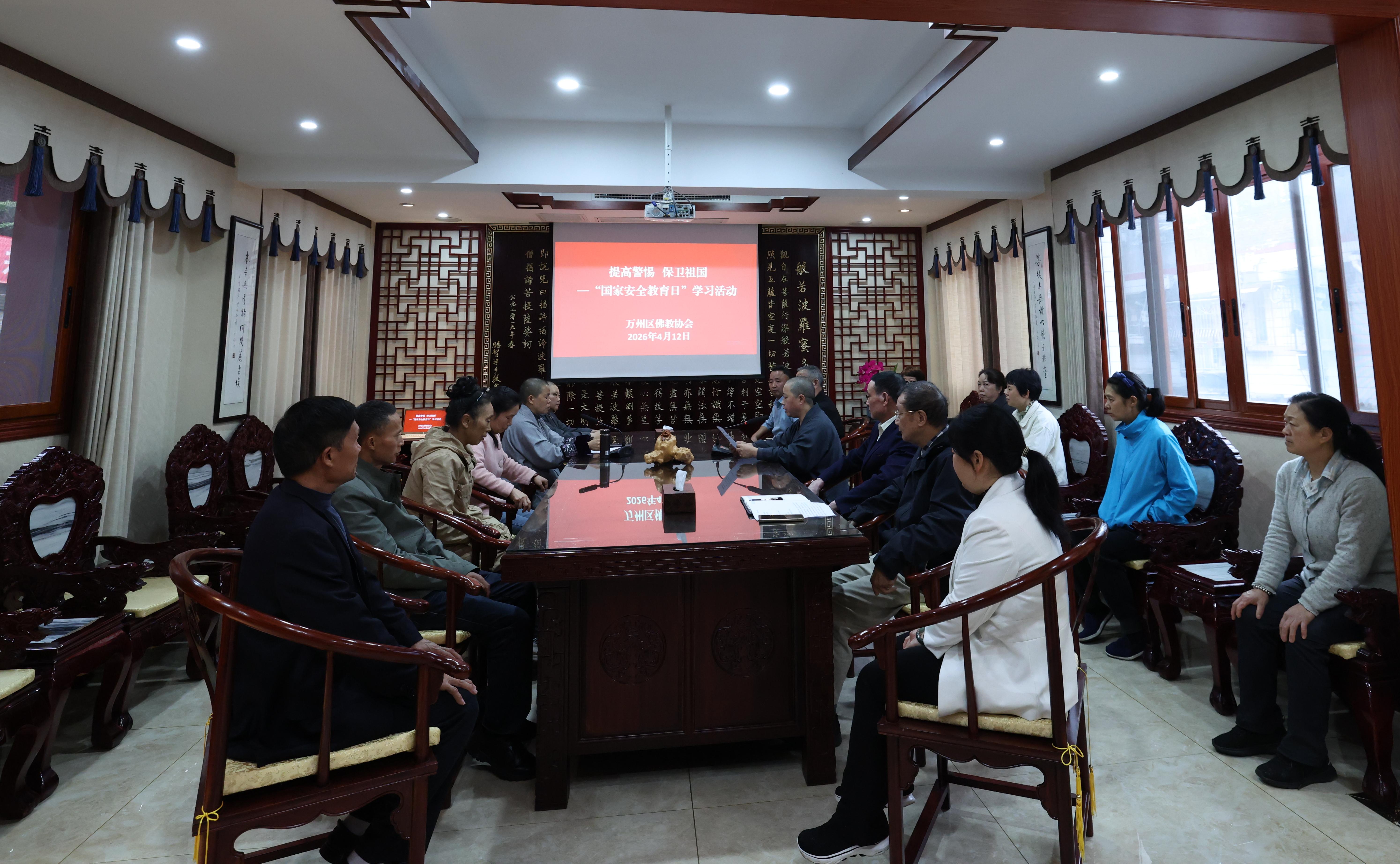 2026年4月12日晚上,重庆市万州区佛教协会会长胜智法师组织,协会部分班子成员及部分居士参加学习提高警惕 保卫祖国----“国家安全教育日”活动。